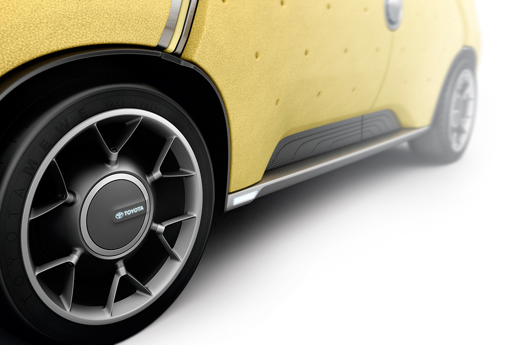 Wie oben erwähnt, kommt der Toyota ME.WE durch seine Leichtbauweise auf ein Gewicht von rund 750 Kilogramm. Das sind gut 20% weniger als die Konkurrenz in der Kleinwagen-Klasse. Die gesamte Karosserie nimmt dabei lediglich ein Gewicht von 14 Kilogramm ein. Im Vordergrund dieser Leichtbauweise steht jedoch nicht nur das Gewicht. Auch die umweltfreundlichen Aspekte spielen eine große Rolle. Die Karosserie kann zu 100% recycelt werden, genau wie die Aluminiumstreben. Das Bambusholz übernimmt die Rolle des edlen Parts, ist aber auch ein schnell nachwachsender Rohstoff.