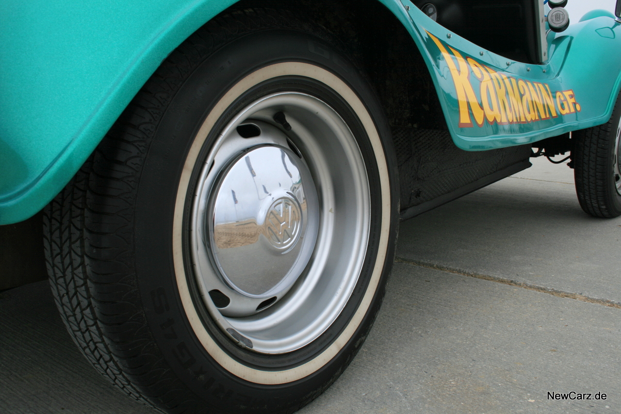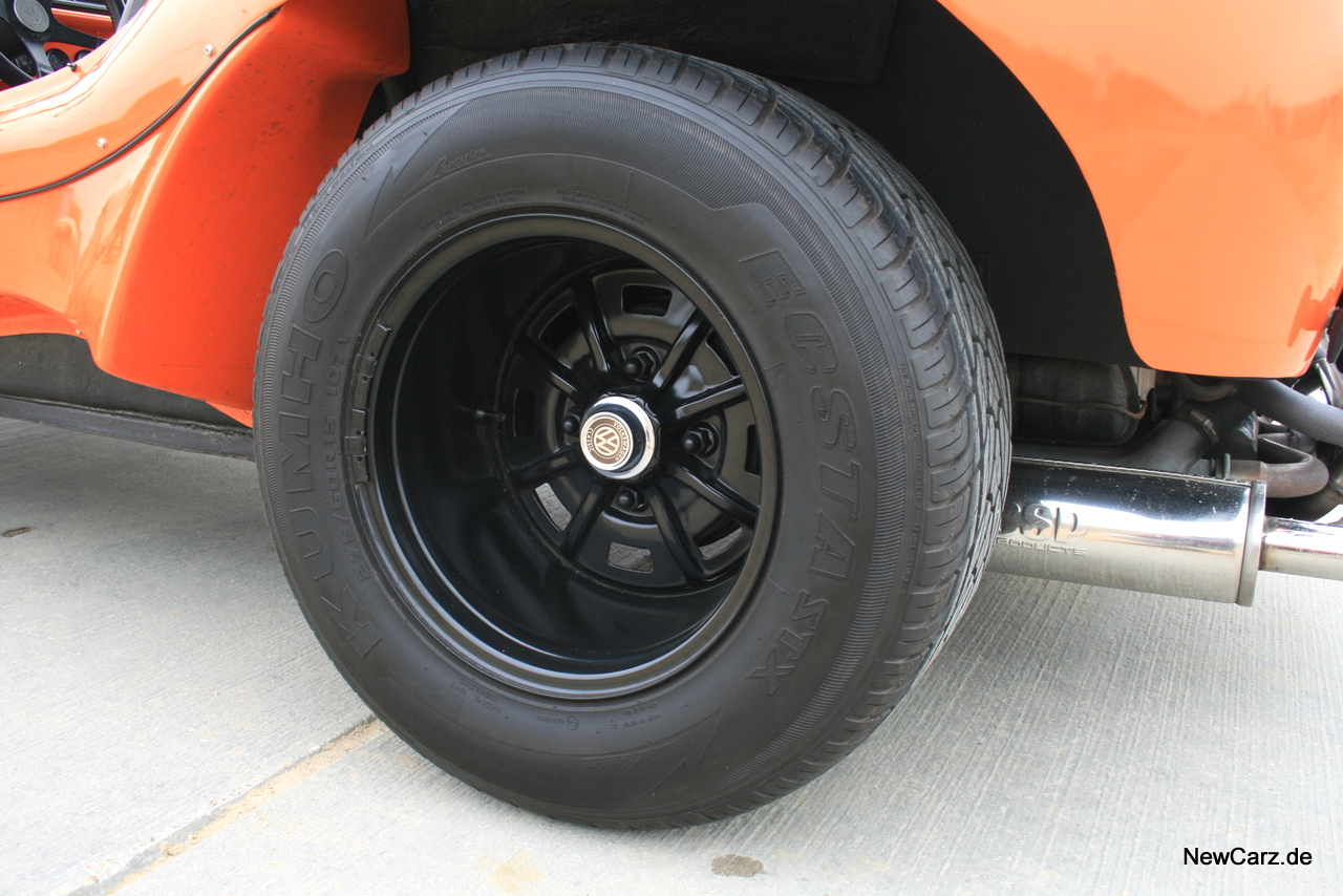 Ein angedeuteter Unterfahrschutz weist auf leichte Geländegängigkeit hin und die beplankten, ausgestellten Radkästen unterstreichen den Anspruch an den Erben des Käfers.