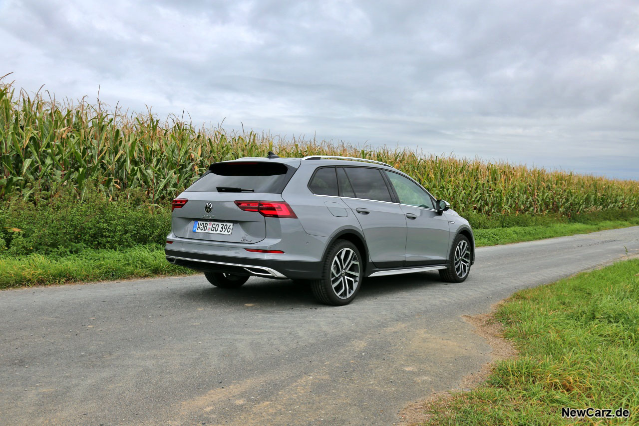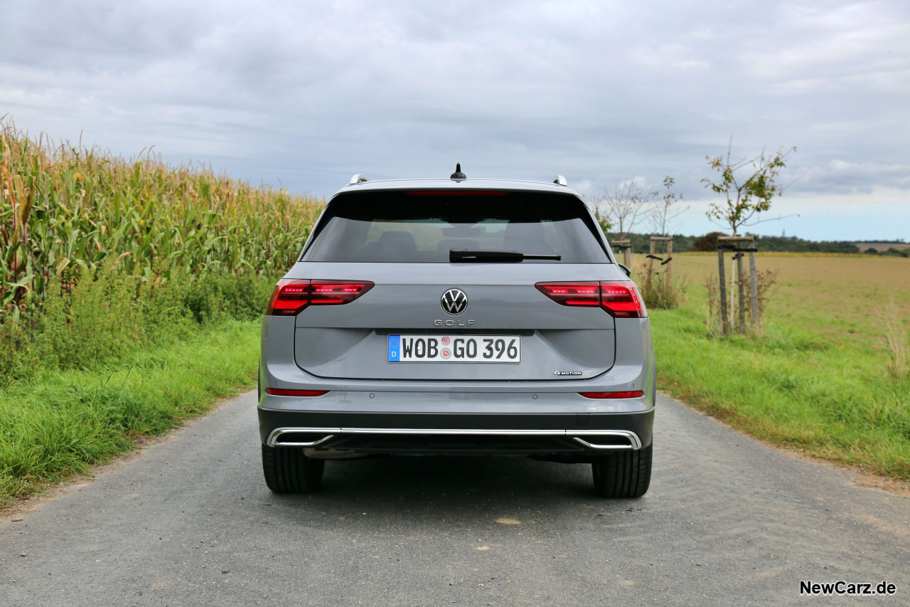 Am Heck bleibt der Alltrack – der streng genommen VW Golf Variant Alltrack heißen müsste, da es ihn nur als Kombi gibt – noch am zivilsten. Hier macht sich nur bei genauer Betrachtung der Unterschied zum konventionellen Bruder bemerkbar und ein 4Motion-Badge weist auf den Allradantrieb hin.