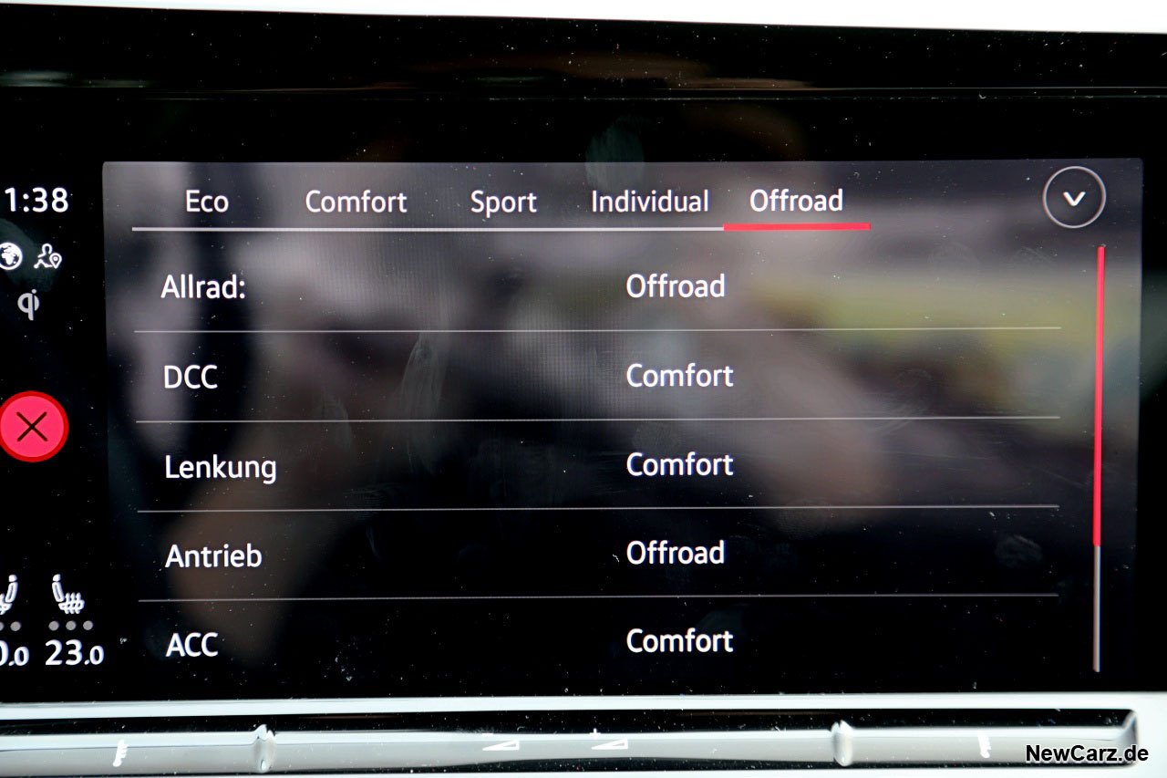 Wählt man dagegen den Fahrmodus „Sport“, sind diese Eigenschaften ad acta gelegt und man kann mit dem Alltrack auch zügig durch Kurven eilen. Eine derart signifikante Spreizung hatte bislang noch keiner der Test-Golfs an den Tag gelegt, wobei bei allen Derivaten die Spreizung zwischen den Fahrmodi spürbar war.