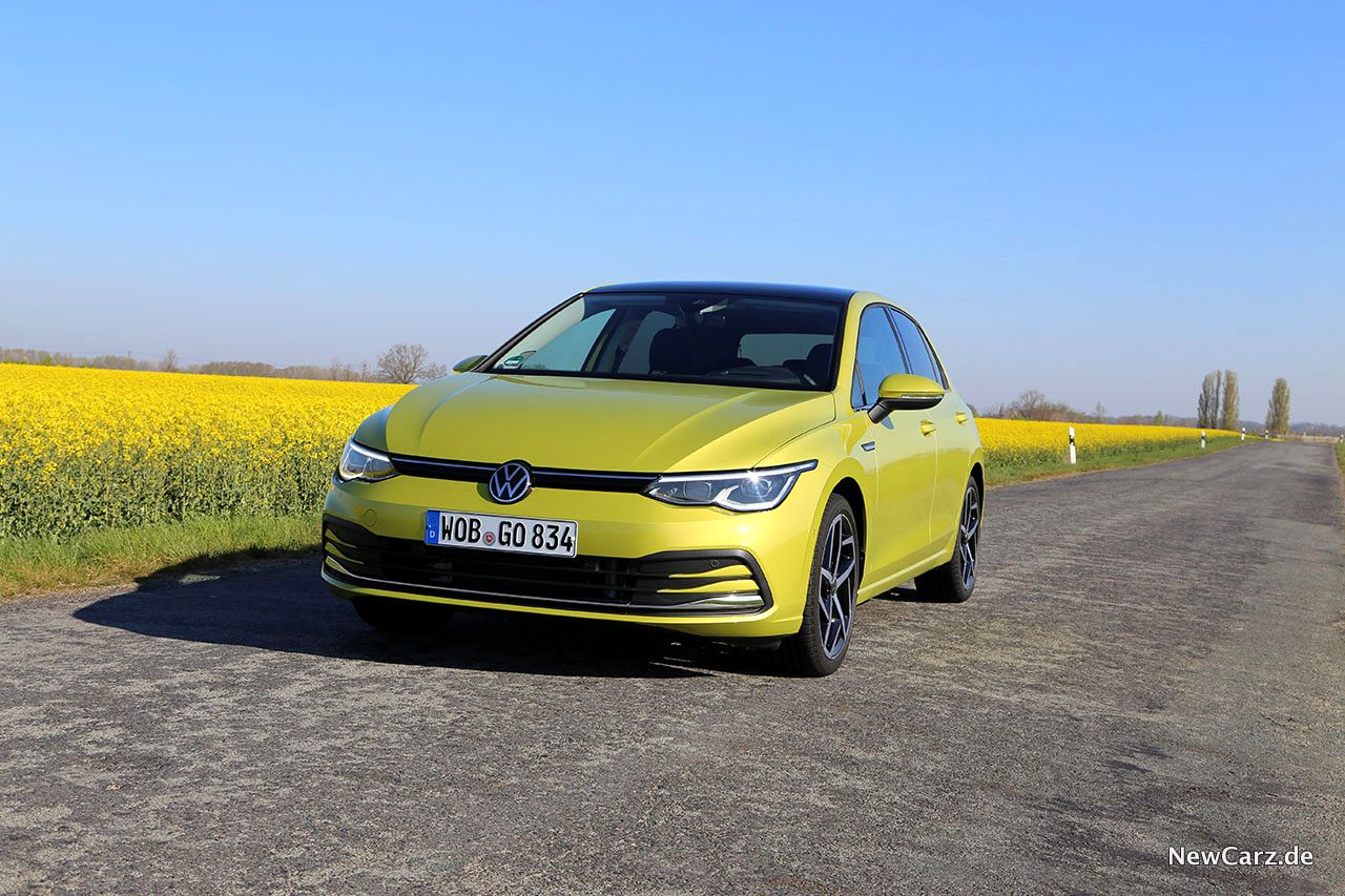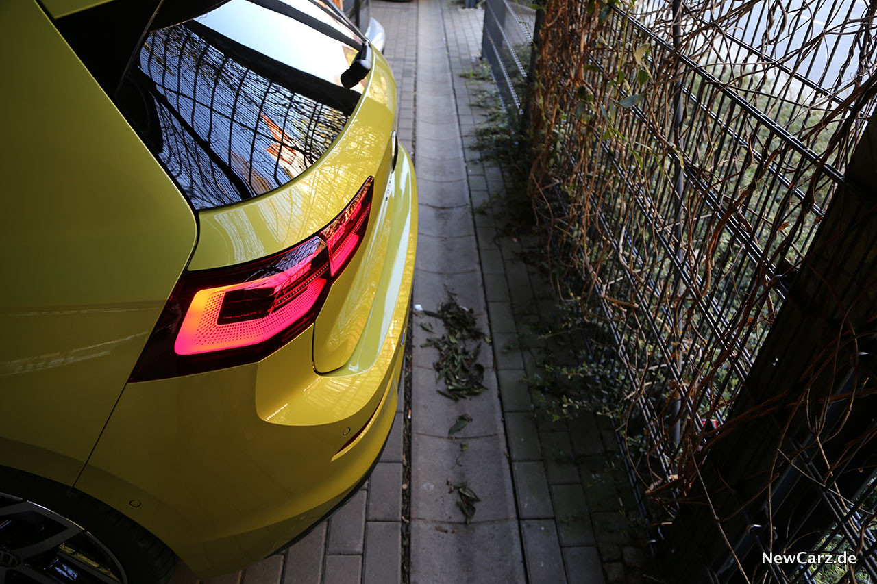 Das Limonengelb Metallic unseres Testprotagonisten ist eine Kohärenz aus Gelb und Grün, wobei die Mehrheit offenbar ein wenig dem Gelb zuzurechnen ist. Es erscheint kühler, als das Kurkumagelb vom Vorgänger. Doch der VW Golf VIII wirkt in dieser neuen Farbgebung sympathisch und frisch – es passt zu ihm.