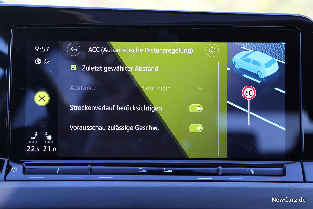 Zudem berücksichtigt das ACC selbstständig die vorgeschriebenen Geschwindigkeitslimits und hält sich automatisch an diese – auch das ist deaktivierbar. Wenn man diese Limits jetzt noch selbst in einer Toleranzgrenze von einigen km/h variieren könnte, wäre das System perfekt.