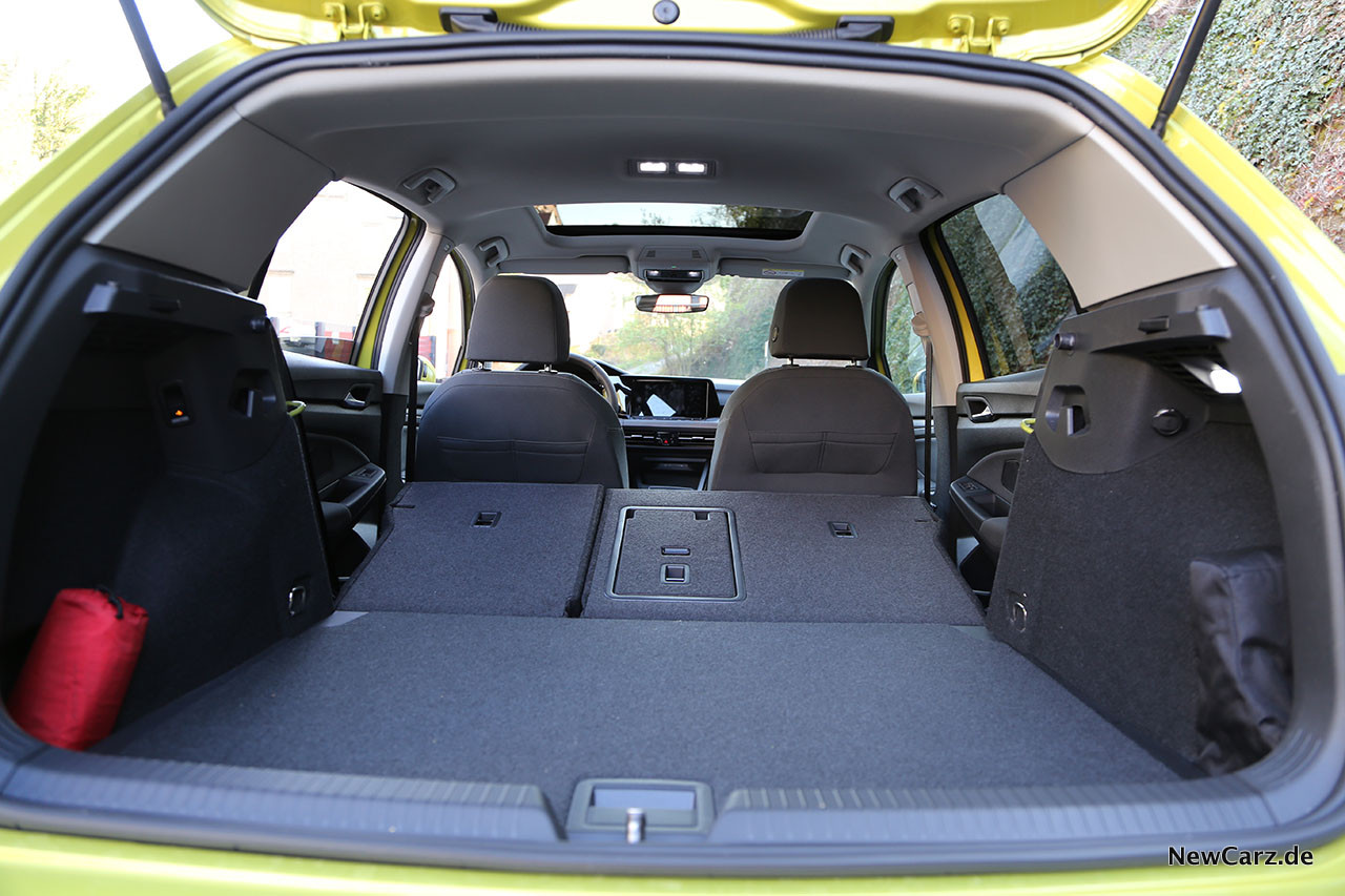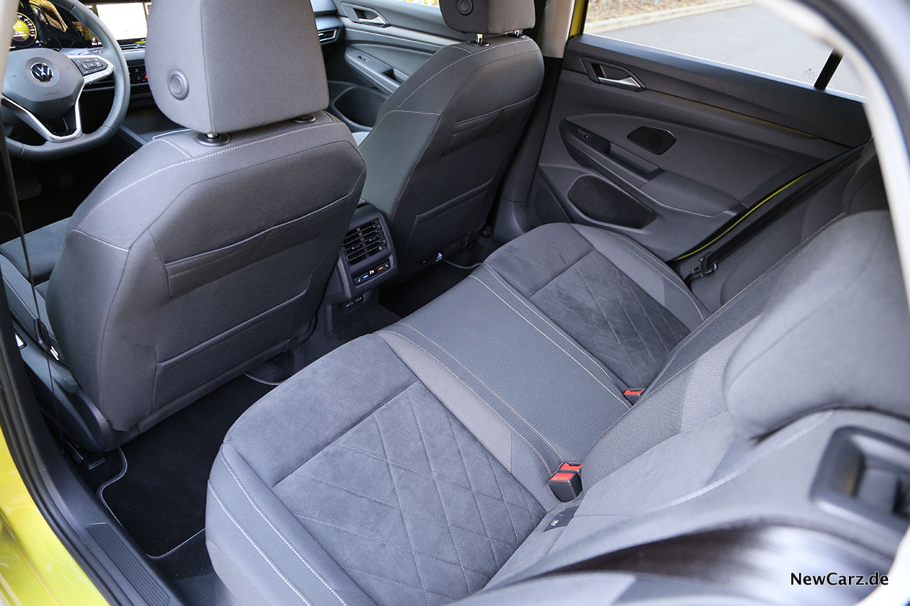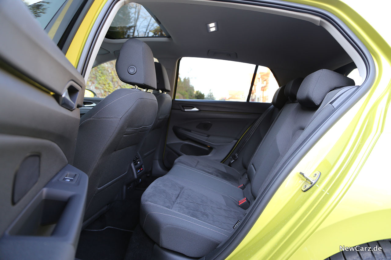 Platztechnisch gibt es – und das ist traditionell in einem VW Golf – keine echten Kritikpunkte. Auch im Fond finden die Passagiere genügend Platz für ein Auto der Kompaktklasse und insbesondere Kopf- und Beinfreiheit können sich sehen lassen. Weit öffnende Fondtüren erleichtern zudem den Ein- und Ausstieg signifikant.