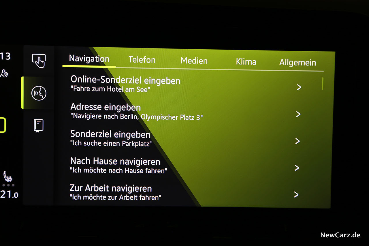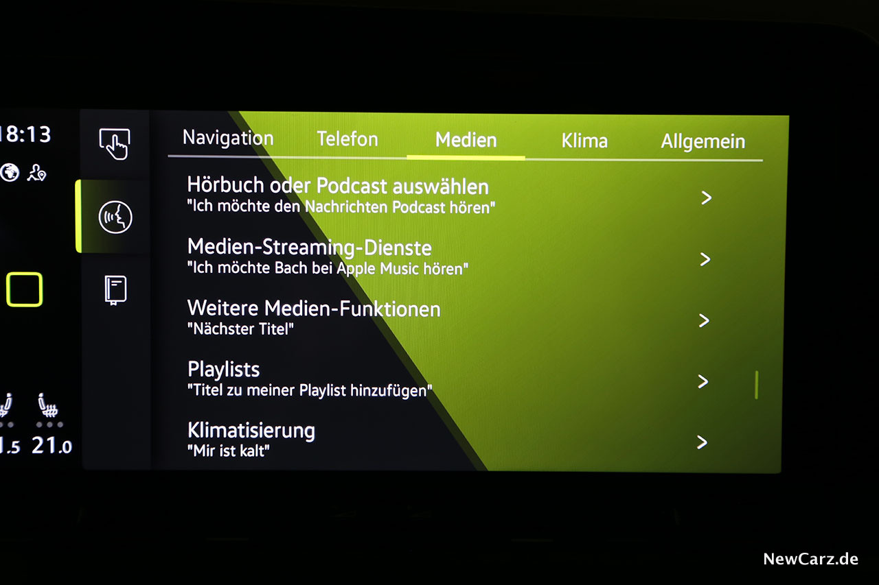 Ebenfalls als Neuheit in der Kompaktklasse dürfte die intelligente Sprachsteuerung gelten. Mit „Hallo Volkswagen“ gestartet, reagiert das System auf Ansagen, wie „Mir ist kalt“ und auf viele andere Dinge. Im Praxistest könnte die Empfindlichkeit ein bisschen feinfühliger sein, denn manchmal mussten wir recht laut werden, bevor das System aktiv wurde.