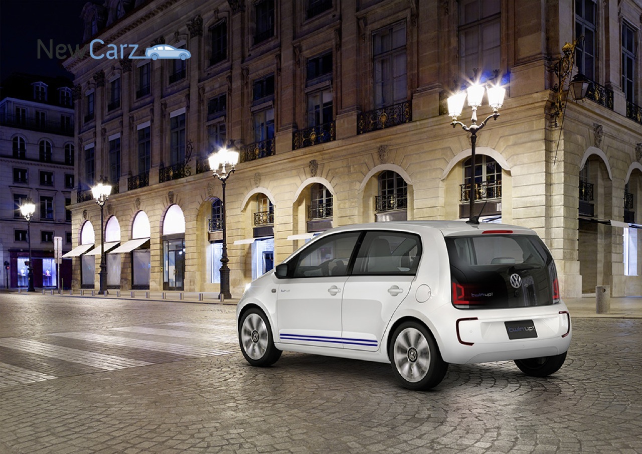 Kombiniert man nun die guten aerodynamischen Eigenschaften, dem niedrigen Leergewicht von 1.205 kg und den Reifen mit geringem Rollwiderstand (165/70 R 14) so erhält man hervorragende Effizienzwerte: der twin up! erreicht emissionsfrei und rein elektrisch eine Reichweite von 50 Kilometern. Im sogenannten „neuen europäischen Fahrzyklus“ – einem standardisierten Test- und Vergleichsmodus für Plug-In-Hybridfahrzeuge in Europa – erreicht die Studie den extrem niedrigen Verbrauchswert von nur 1,1 Litern auf 100 km. Die CO2-Emission dabei beträgt nur 27 g/km.