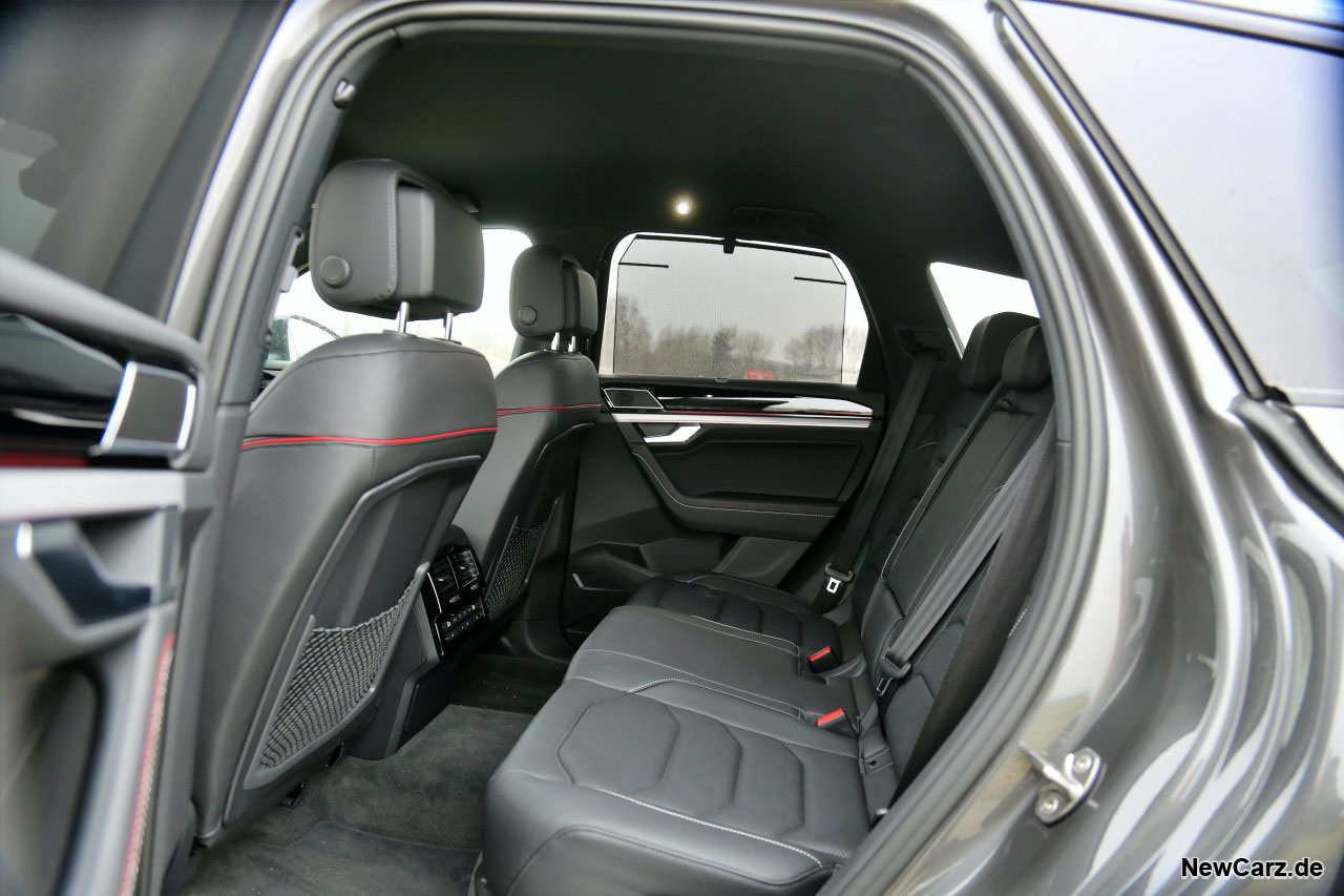 Wenn wir zum Vergleich die Topmotorisierung Touareg R heranziehen, ist unser Testwagen fahrwerkstechnisch diesem um Längen überlegen. Beim Touareg R handelt es sich um einen Plug-in Hybrid, dessen Technik plus Akku so viel Platz einnimmt, dass Volkswagen auf ebendiese Wankstabilisierung verzichten musste. Insbesondere bei der Topmotorisierung grenzt das aus unserer Sicht ein bisschen an Selbstverstümmelung.