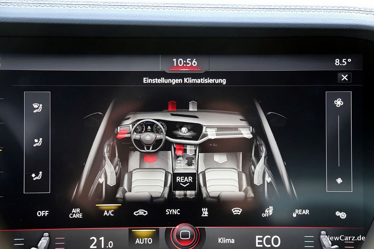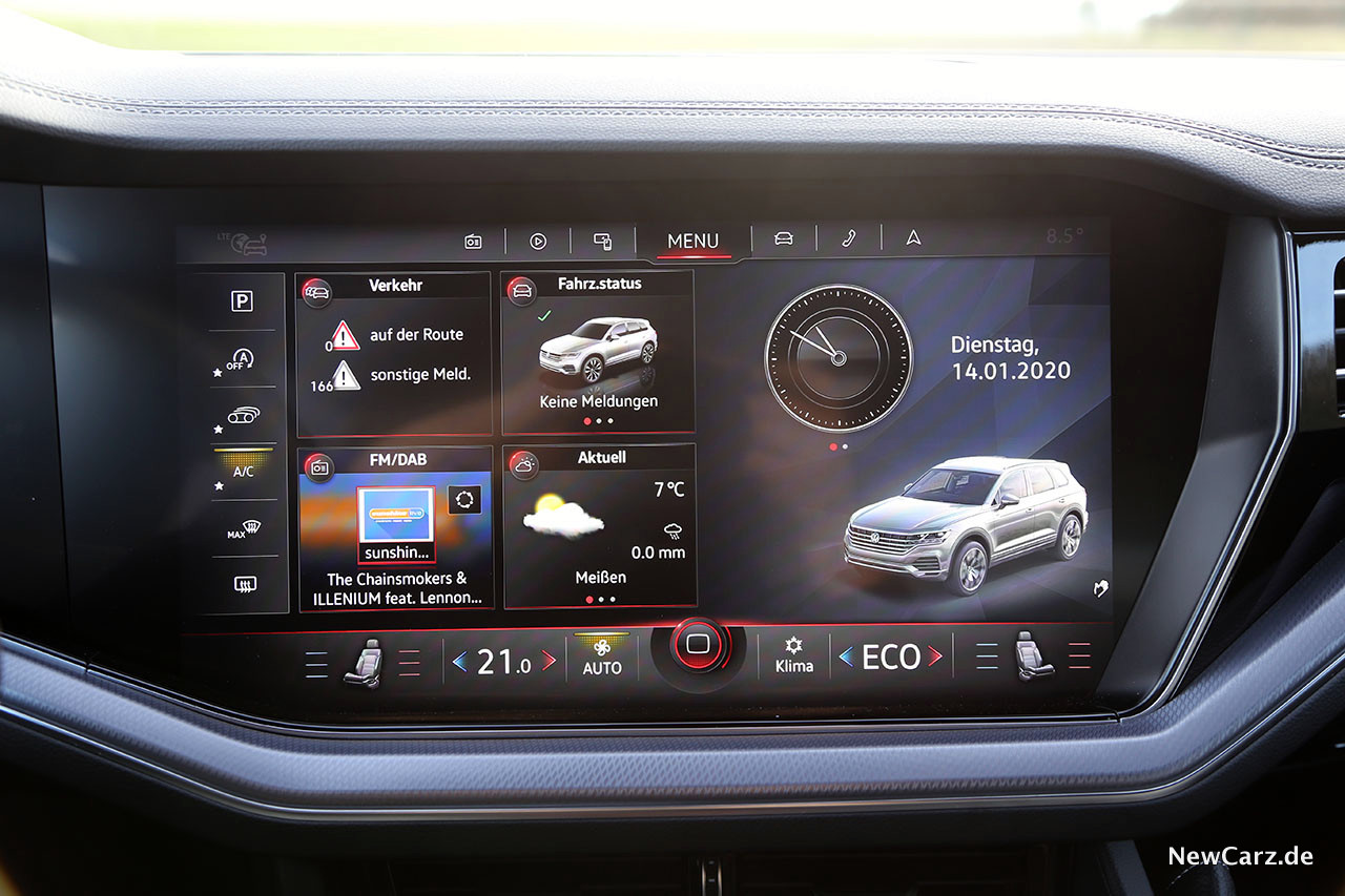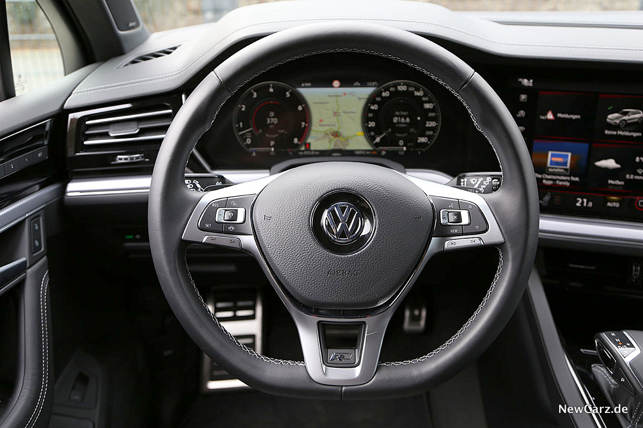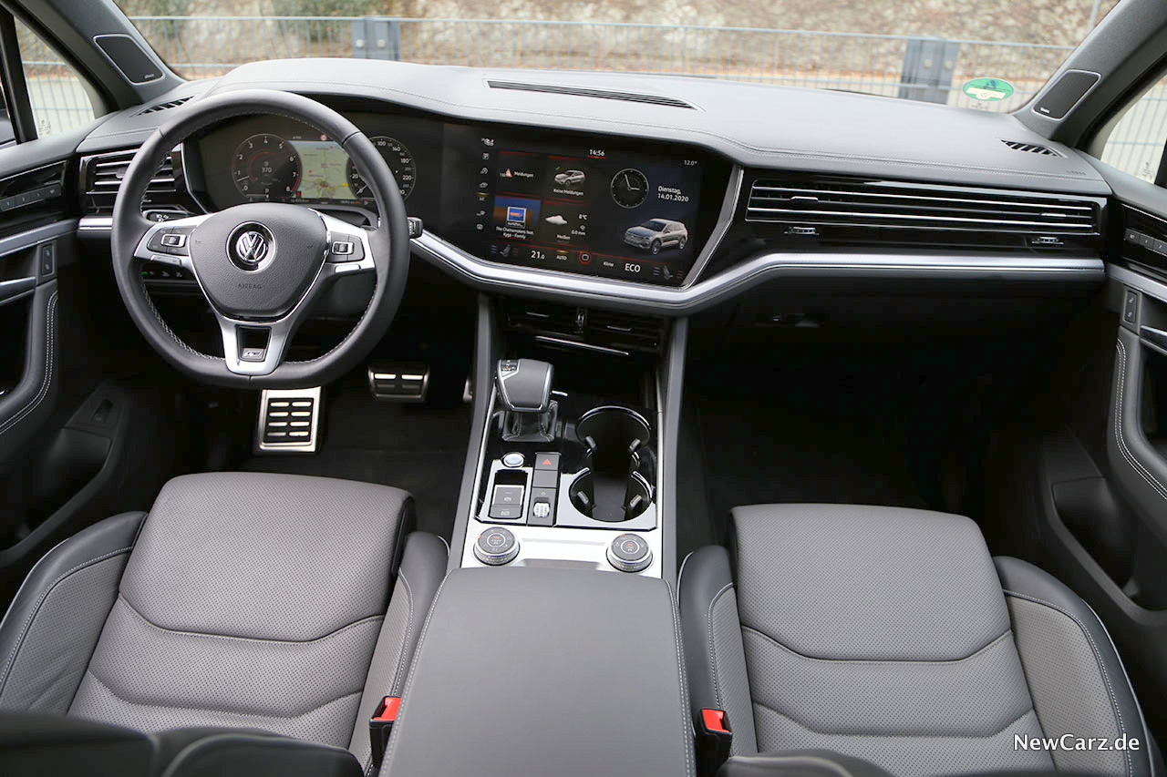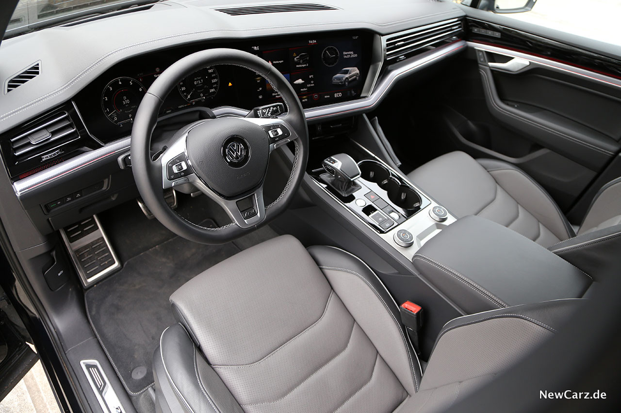Doch als eigentliches Highlight kann hier das R-Line-Paket für 3.300 Euro gelten, welches dem SUV fast einen athletischen Touch verleiht. Allein die Front des VW Touareg V6 TSI mit den klavierlack-schwarzen Rahmungen, sorgt für jede Menge charismatischer Ausstrahlungskraft.