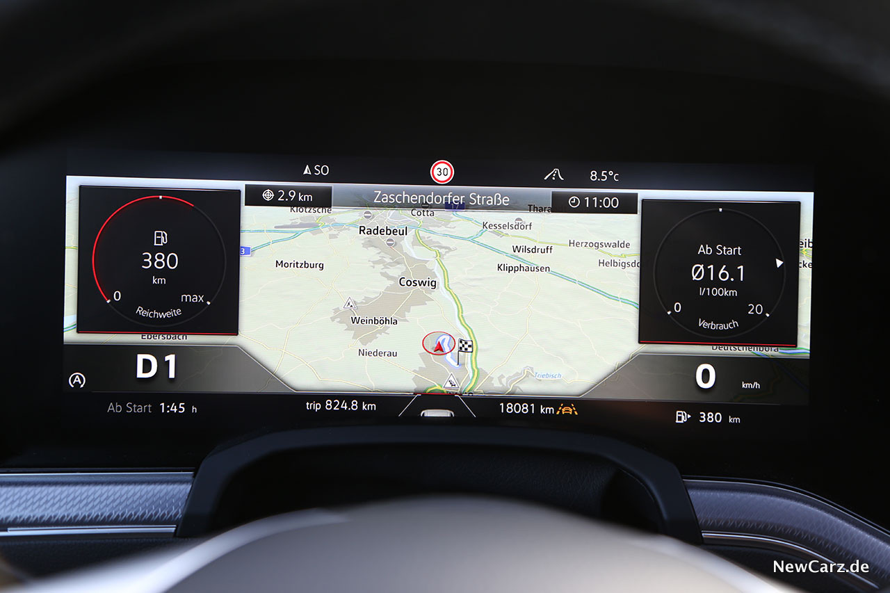Die Scheinwerferreinigungsanlage tat ihren Dienst im Test übrigens mit überzeugender Gründlichkeit. Diese ist, sofern man das IQ.Light wählt, ein zwingender Ausstattungspunkt für rund 180 Euro.