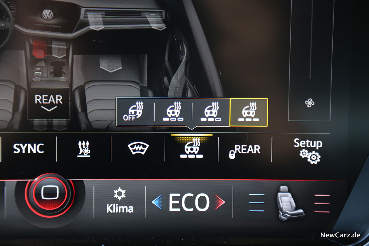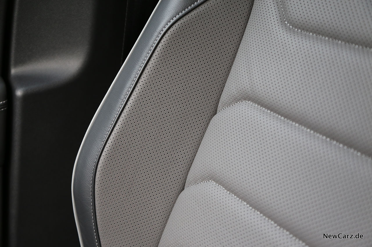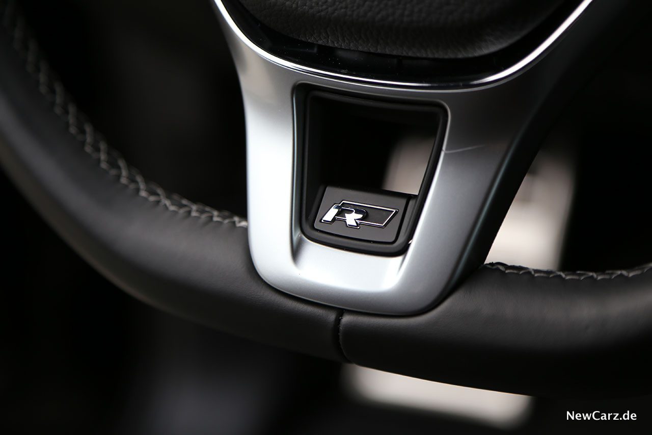 Erwartungsgemäß wird auch das Interieur von einer Vielzahl der R-Line zugehörigen Merkmale geprägt. Dazu gehören unter anderem auch die hervorragenden ergoComfort-Sitze vorne, die mit dem Lederpaket „Savona“ als R-Line zur Verfügung steht – Kostenpunkt: nochmals 5.000 Euro extra. Die Sitzprobe auf diesem exzellenten Gestühl lässt diesen Aufpreis irgendwie schnell vergessen – man muss das einfach ausprobieren, um diese Aussage nachvollziehen zu können.