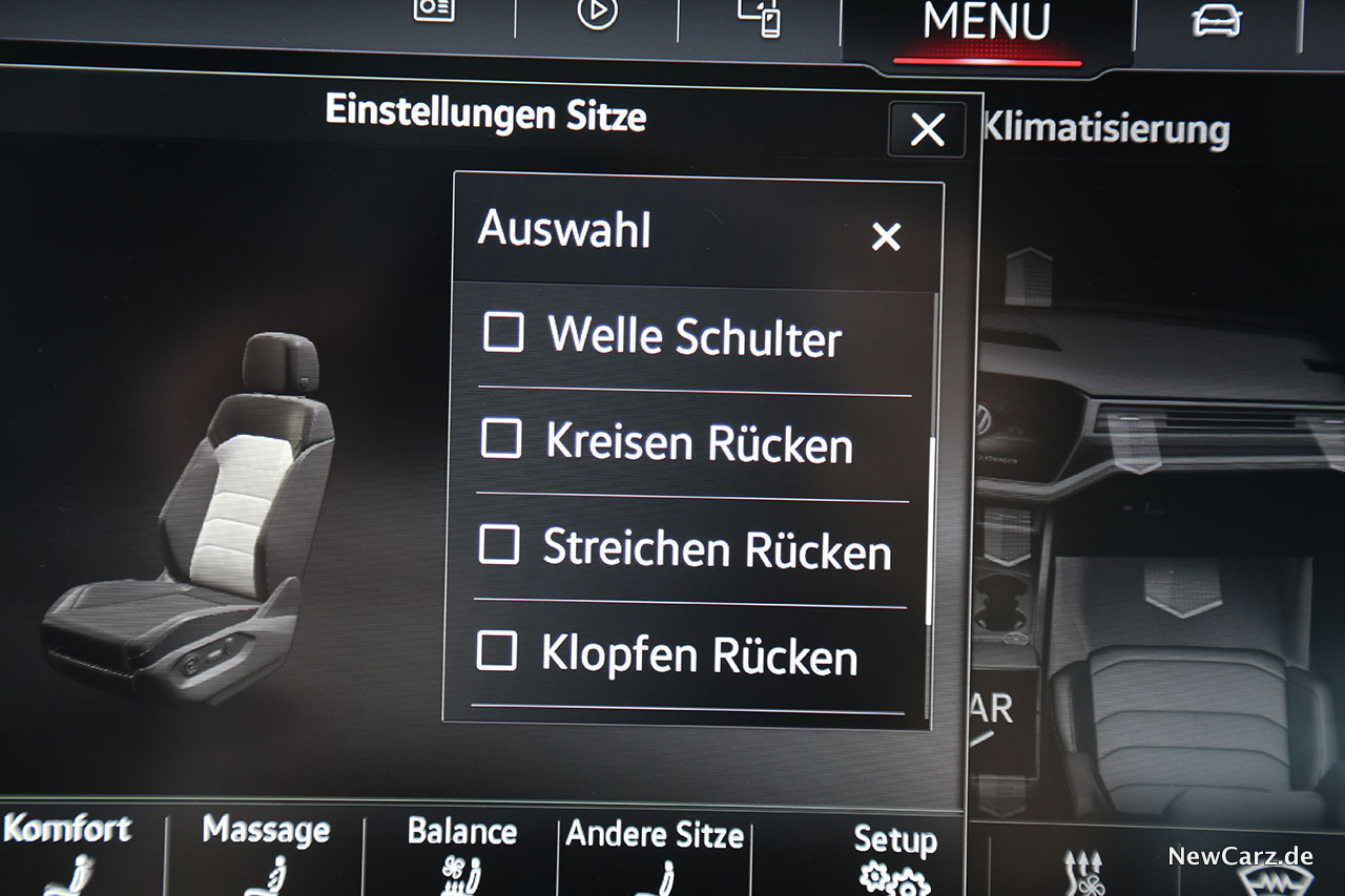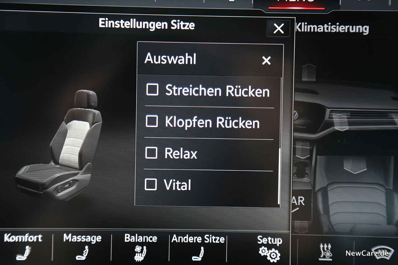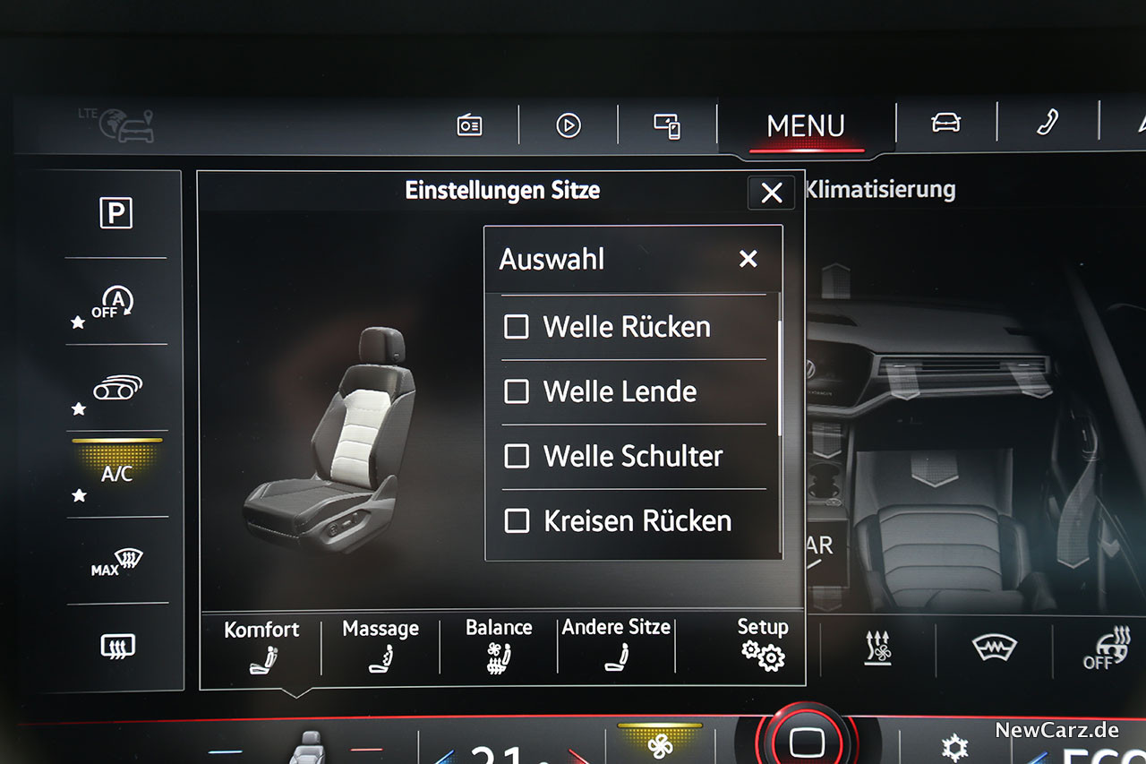 Die bereits erwähnten ergoComfort-Sitze verwöhnen Fahrer und Beifahrer mit einem umfangreichen Massageprogramm, das in seiner Art und Weise viele andere Massagesysteme – auch die in der Luxusklasse – in den Schatten stellt. Zudem können die jeweils dreistufigen Sitz- und Lenkradheizungen und Sitzbelüftungen durch ihre Schnelligkeit, ihre Homogenität beim Heizen sowie ihre Intensität überzeugen.