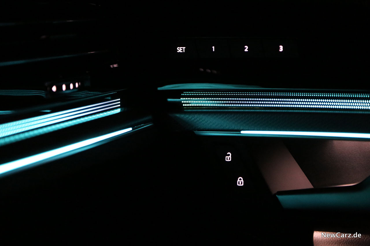 Schlussendlich erfreuten uns Sensoren für das Keyless-System an allen vier Türen plus Heckklappe, die übrigens auch einfach und zuverlässig per Fußschwenk bedient werden konnte. Ebenfalls sinnvoll ist die Softclose-Automatik, die alle Türen inklusive Heckklappe nach dem Anlehnen elektrisch ins Schloss zieht.