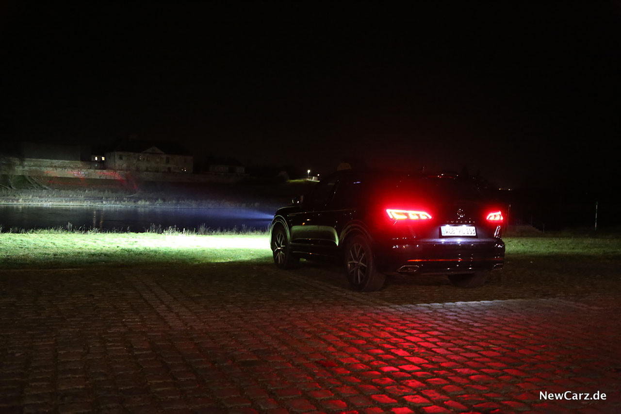 Unser Test-Touareg rollte im Grunde fast voll ausgestattet auf unser Testgelände und lies dadurch fraglos kaum Wünsche offen. Angefangen von dem IQ.Light genannten LED-Matrix-Licht für 1.870 gut investierte Euro, welches nach wie vor das Maß der Dinge in puncto Fahrzeugbeleuchtung darstellt, besaß dieser Touareg auch eine Anhängerkupplung – elektrisch ein- und ausfahrbar und inklusive dem Trailer Assist, den wir bereits hier ausprobierten. Kostenpunkt hierfür sind 1.300 Euro.